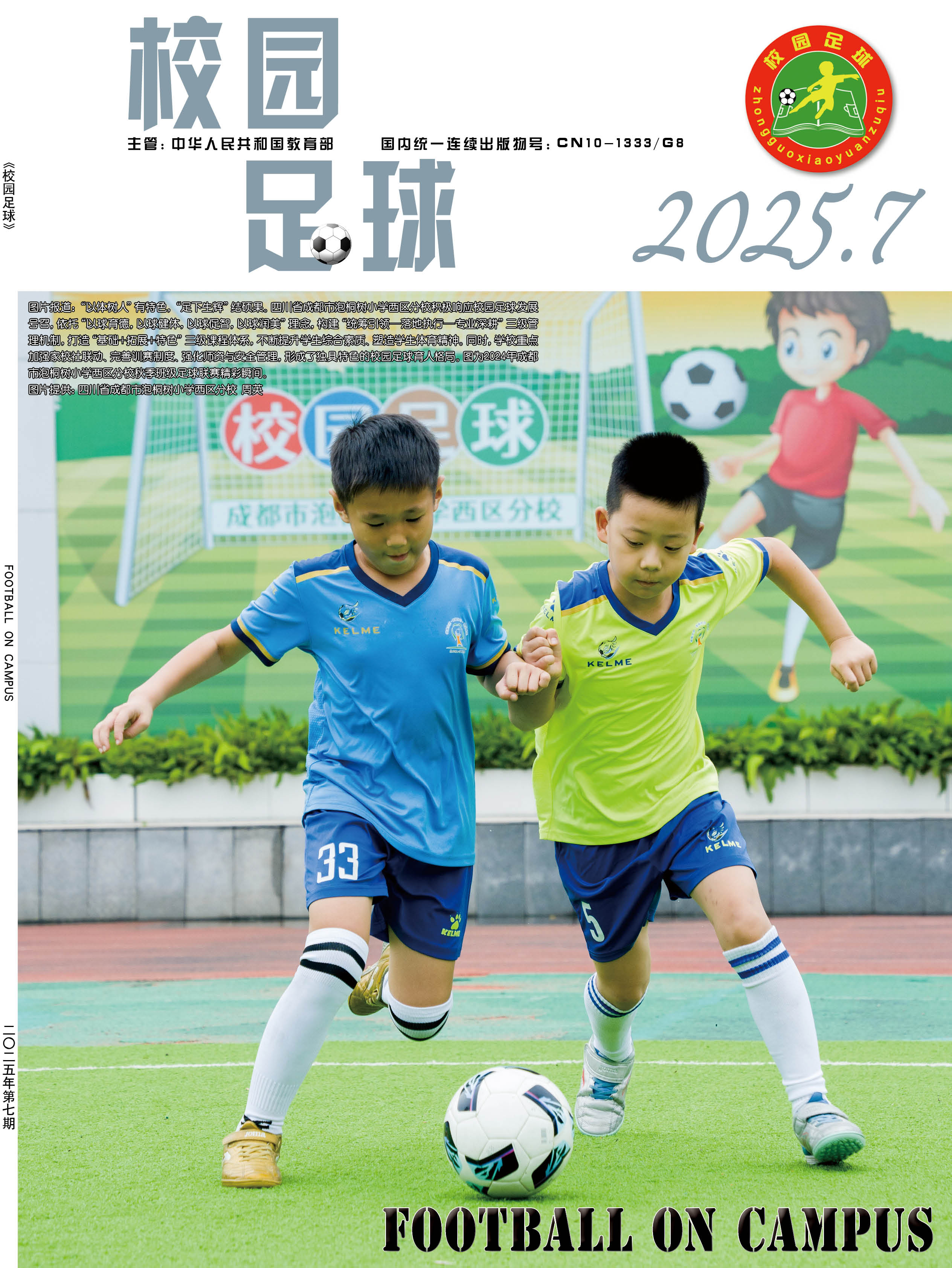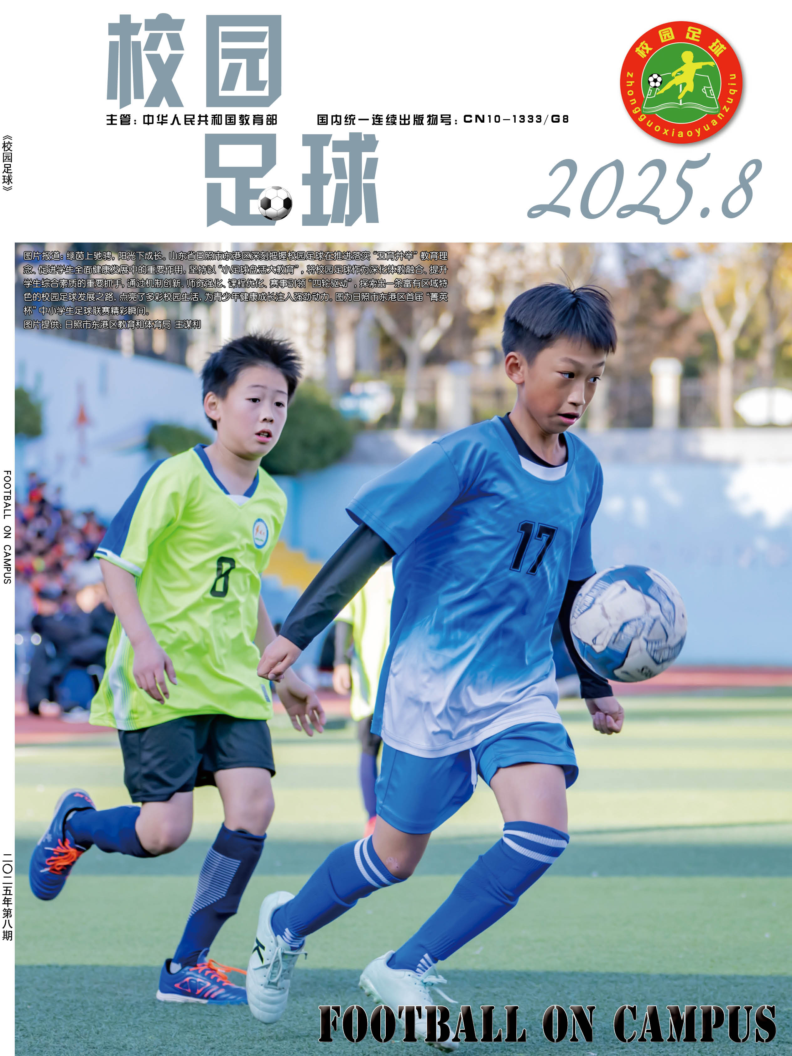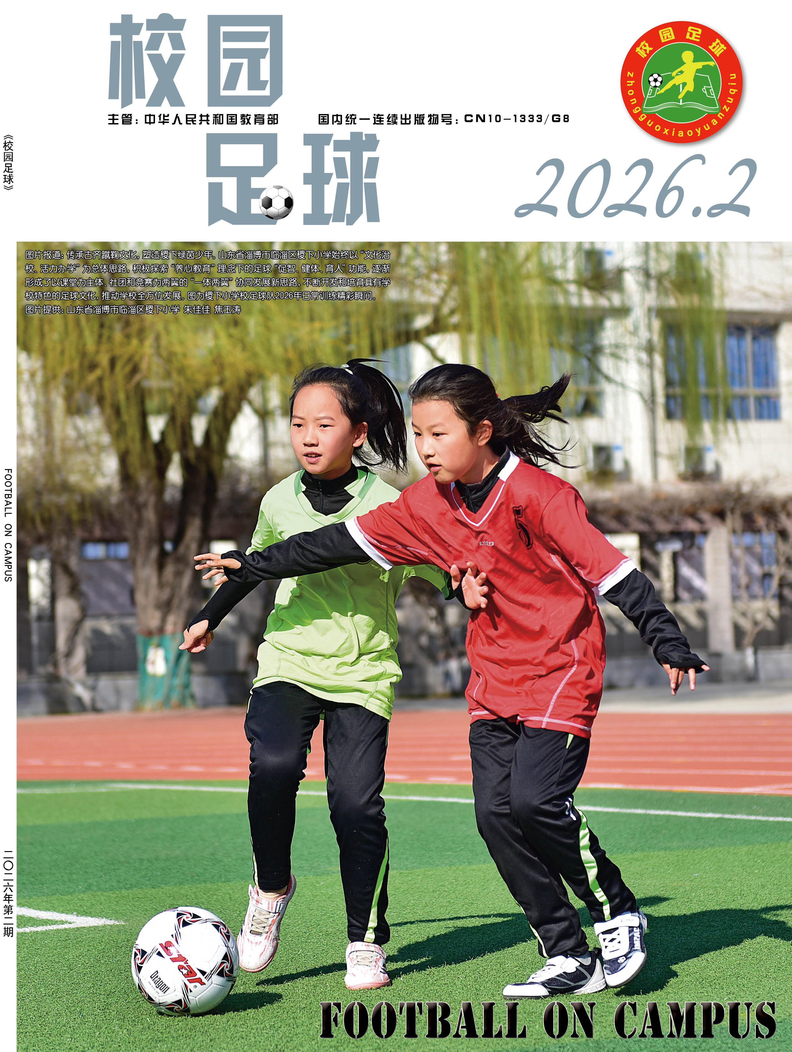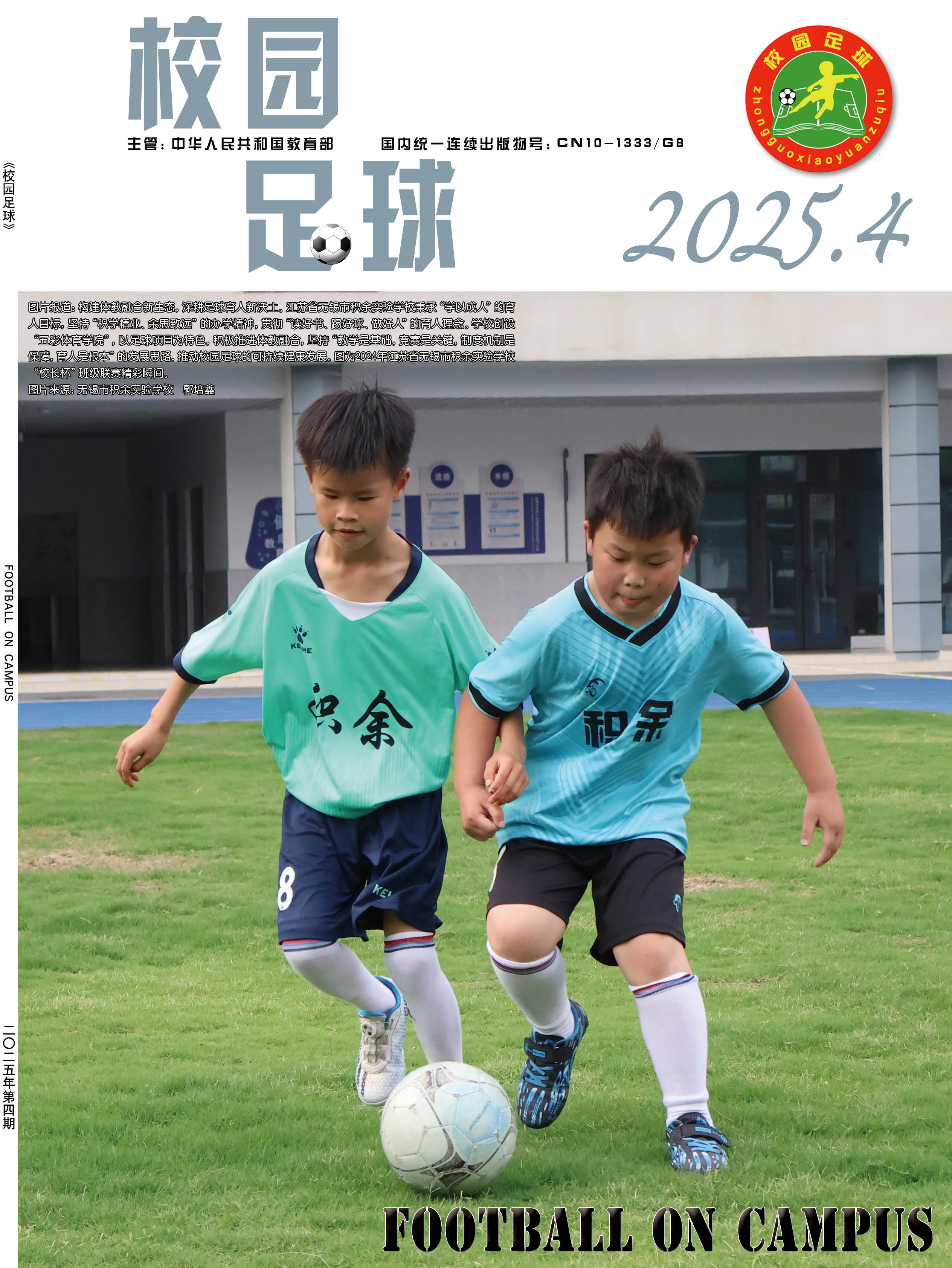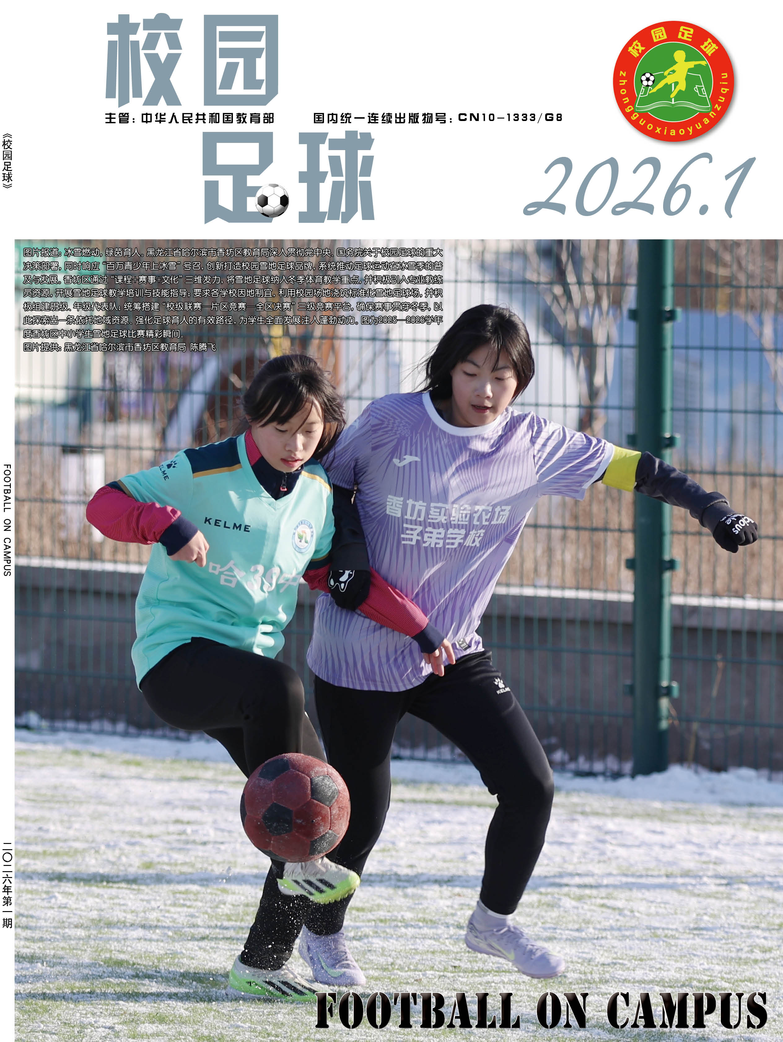 为了贯彻落实“全国学校体育工作座谈会”“全国青少年校园足球工作电视电话会议”等有关会议精神,提升青少年学生体质健康水平,夯实中国足球运动技能基础,正确引导学校、学生、家长和社会参与及支持校园足球工作,营造良好的社会舆论氛围,2015年,经教育部同意并报国家新闻出版广电总局批准,由中国中学生体育协会主办的国家级期刊《校园足球》(ISSN 2096-0352; CN 10-1333/G8) 正式出版。读者对象:校园足球行政管理人员、一线体育教师、体育教研员、广大青少年学生、校园足球特色学校等。